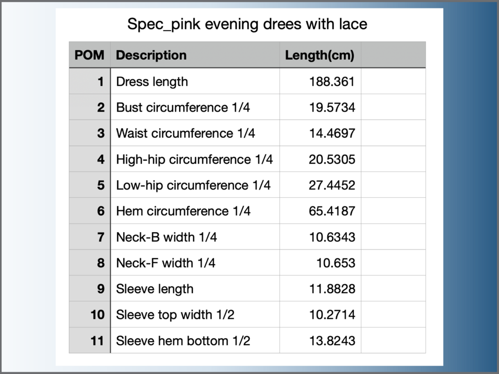 - 1 Dress top spec is in csv format