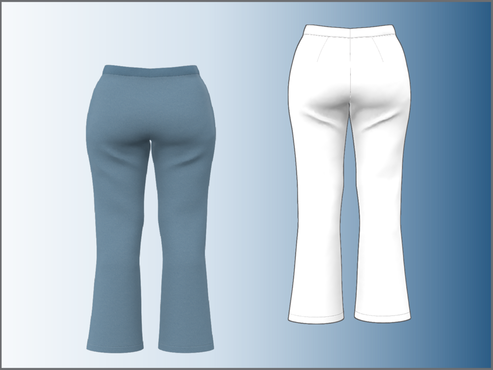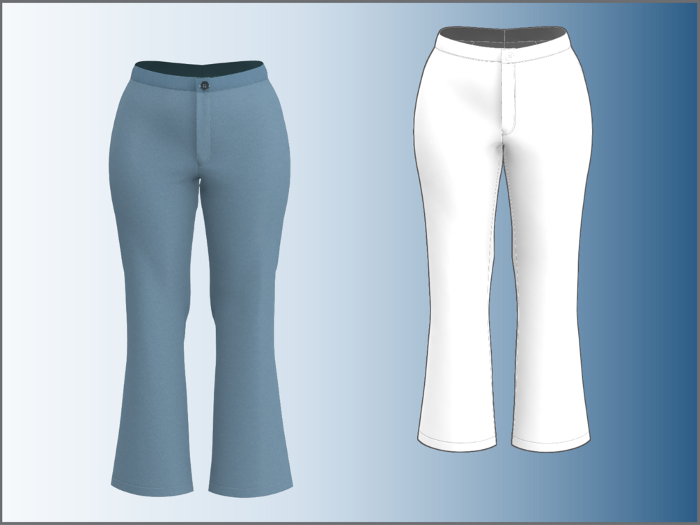 These basic women’s pants patterns are a petite curvy size 10. When you import the patterns into to clo, change the avatar side to us_astm_petite_curvy_10.avs. See the link for a tutorial: https://www.youtube.com/channel/UCP0U6wS6i719i2nwx5Io1Mw
