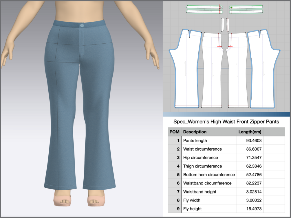 Women’s High Waist Front Zipper Pants DXF/PDF Patterns for CLO3D/Ai