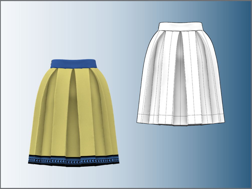 Basic Box Pleated Skirt Pattern/Ukrainian Flag Color DXF/PDF for CLO3D/Ai