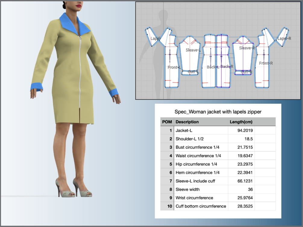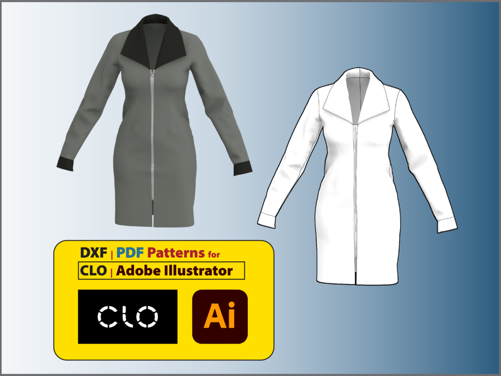 A DXF/PDF Women's Jacket with Lapels Long Sleeves Pattern. These files are prepared for CLO3D and Adobe Illustrator Digital files ready for bringing into CLO3D or Adobe Illustrator software and you can alter them to meet your need as a fashion designer. File delivered as an individual file that includes pdf, dxf, and csv. If you find this item useful, please kindly consider giving a rating, which will help future designers.